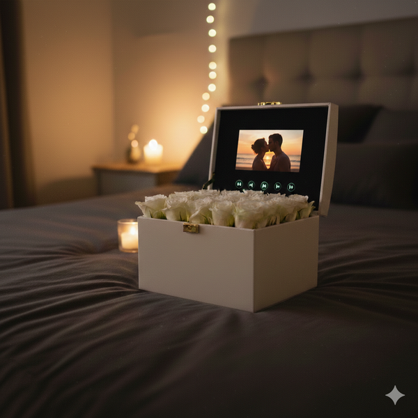 Surprise them with a personalized video message tucked inside a premium box of hand-picked roses. The ultimate gesture for anniversaries, birthdays, and "I do’s.